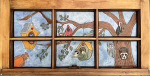 In my current body of work, observations I made of animals in their environment - in my garden, at an aquarium - were used to create doodles in my sketchbook. After I design a composition that refl ects my imagination about their world, these doodles are carved in clay surfaces, and layers of underglaze and glaze provide color and depth to these whimsical pieces.